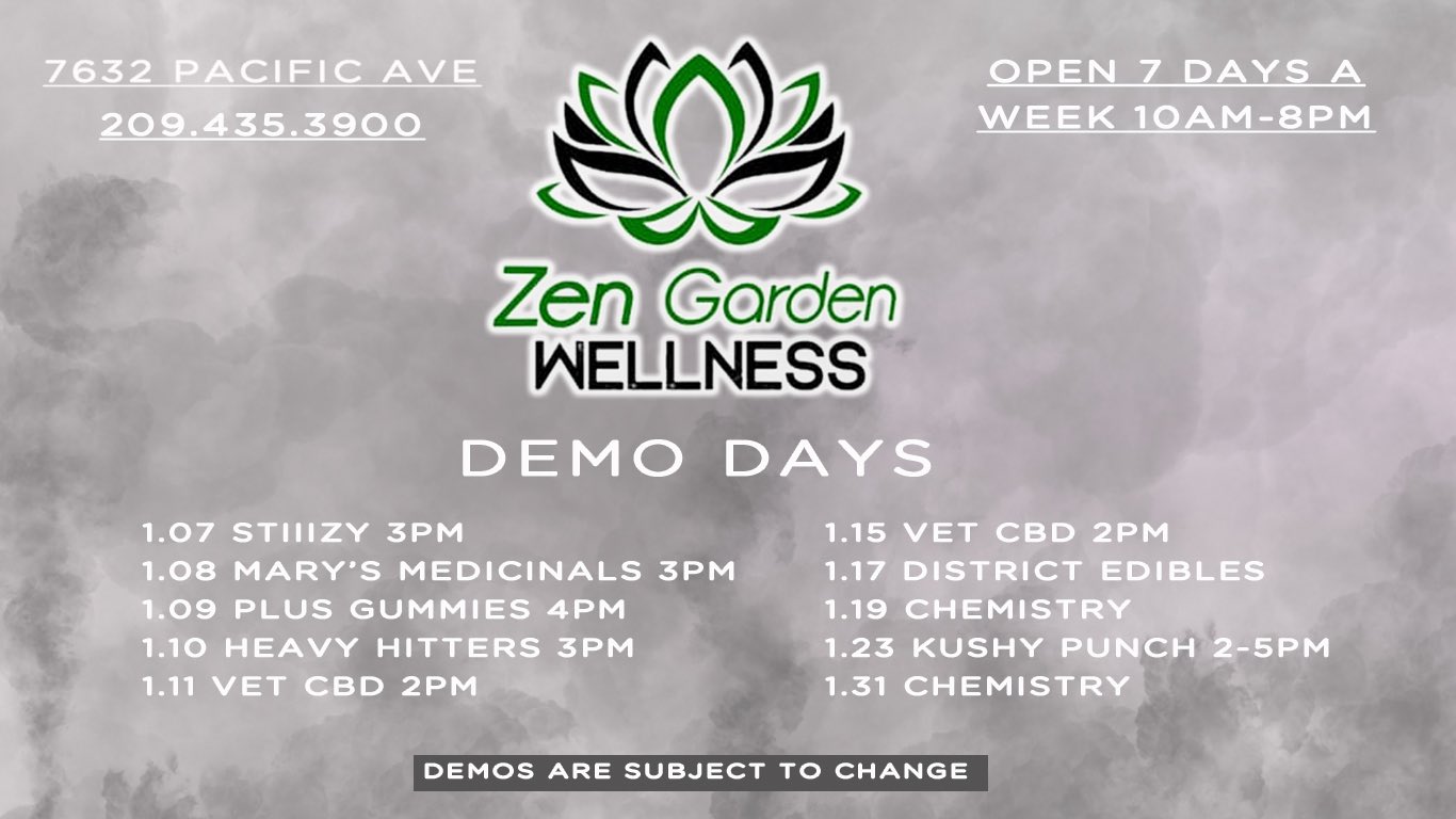 Zen Garden Wellness located in Stockton at 7632 Pacific Ave carries a selection of dispensary menu products to help customers get the relief they deserve. All cannabis products sold at this. Front Desk Receptionist 1491per.